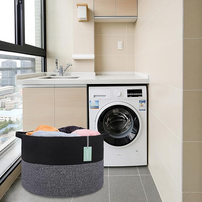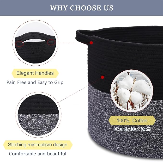 - 【Multi-purpose Design】A stylish, practical alternative to plastic baskets or wicker baskets storage solutions. Originally designed as a laundry basket, blanket basket, or nursery basket, it can be used more. You can use this woven rope basket as a dirty clothes basket, toy basket bin, baby laundry basket, laundry bin, stuffed animal basket, baby clothes basket, plant basket, pillow basket, towel basket and even a pet toy basket. The possibilities are endless. Carefully chosen colors and multiuse design will also make this a unique home decor in your home.