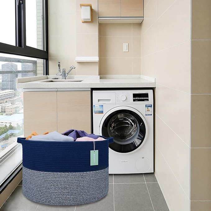 - 【Multi-purpose Design】A stylish, practical alternative to plastic baskets or wicker baskets storage solutions. Originally designed as a laundry basket, blanket basket, or nursery basket, it can be used more. You can use this woven rope basket as a dirty clothes basket, toy basket bin, baby laundry basket, laundry bin, stuffed animal basket, baby clothes basket, plant basket, pillow basket, towel basket and even a pet toy basket. The possibilities are endless. Carefully chosen colors and multiuse design will also make this a unique home decor in your home.