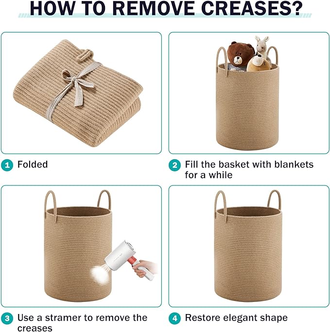- 【Multipurpose Storage Baskets】72L capacity basket can keep things organized in a stylish and decorative way. You can use them to store extra towels, blanket, clothing, toys for baby and dogs, books, pillows or any other household items around the house, anything you can imagine