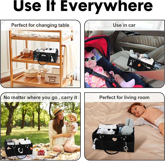 - Diaper Organizer for Changing Table: Our versatile caddy organizer is your go-to solution for organizing baby essentials. it maximizes space and keeps everything within arm's reach for diaper changes. It holds all mom and baby essentials.