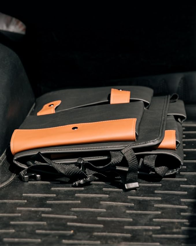 - SLEEK & TOUGH. Crafted from waterproof eco-leather with metal fasteners and reinforced stitching. Holds its shape firmly while adding a premium look to your SUV or sedan interior.