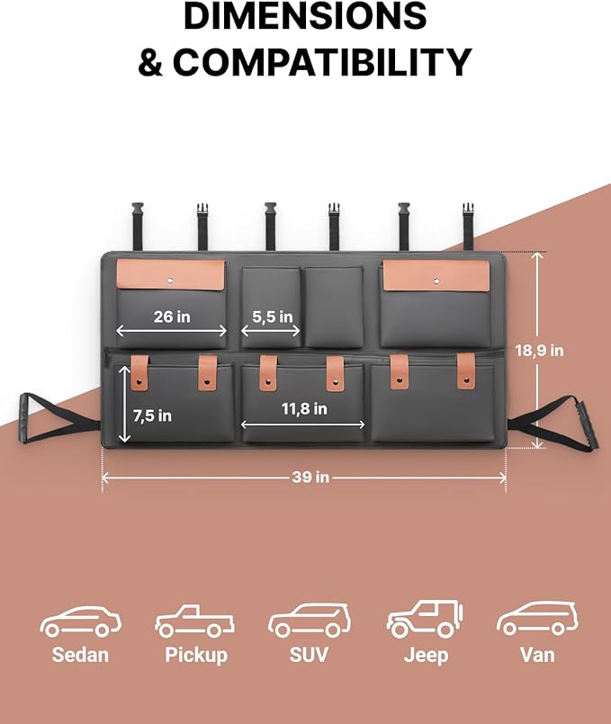 - END CHAOS, FIND SPACE. This hanging trunk organizer transforms wasted backseat area into structured storage. Keep groceries, towels, emergency kits, or sports gear all in one place.