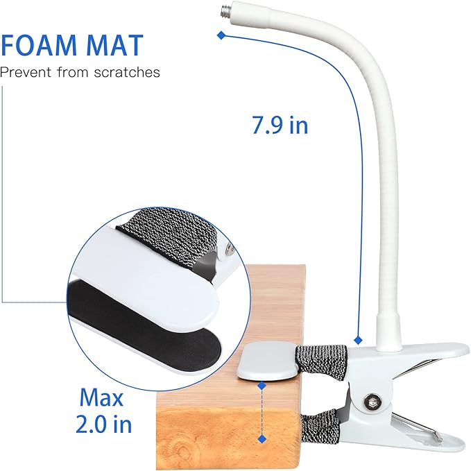 - STURDY AND ABSOLUTELY SAFE : As for the 8 inches long arm,high- quality Aluminum-magnesium alloy solid core makes the arm sturdy enough to hold camera firmly, and the rubber clip headband can protect your furniture from scratches