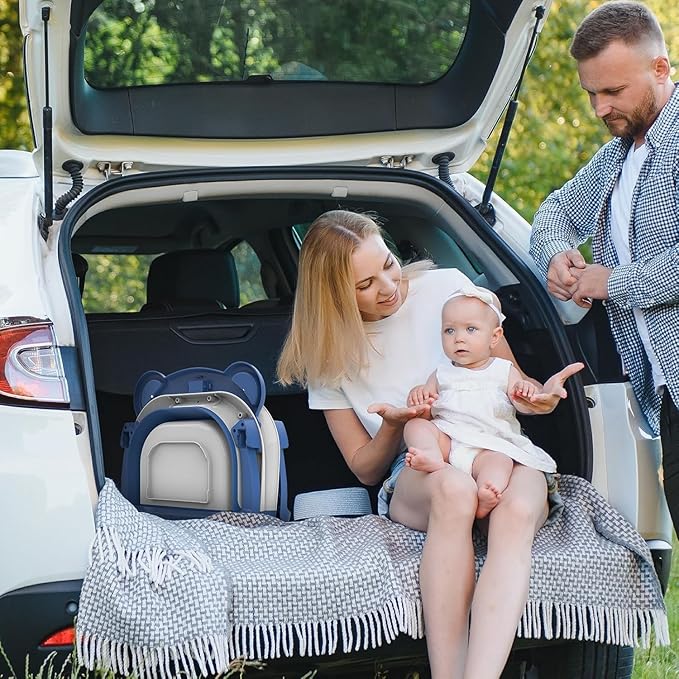 TPN Collapsible Baby Bathtub, Baby Bath Tub with Soft Cushion & Real-Time Thermometer, Baby Bathtub Infant to Toddler Tub (0-36 Months), Portable Travel Baby Tubs for Newborns (Navy Blue)