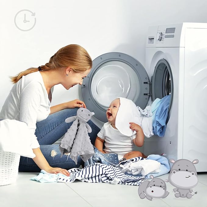 - [Soft hippo Lovey] The hippo security blanket can help baby fall back to sleep quickly or feel safe regardless of where they are