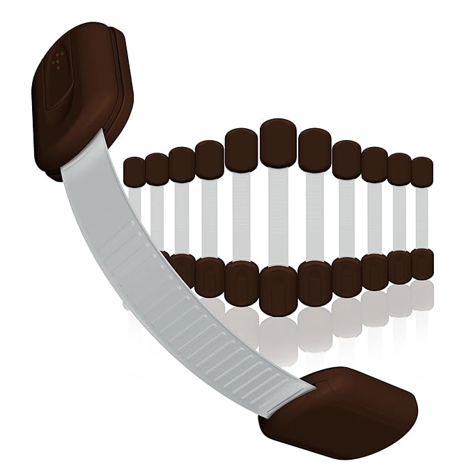- What You Get: 12 multi-purpose cabinet locks that has a high grade 3M adhesive. Flexible strap means you can bend around items from toilet seats to fridges