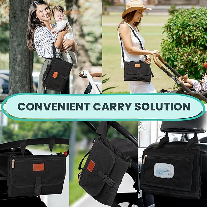 - Convenient carry solution - Our portable changing pad's versatile straps provide seamless attachment to strollers, car headrests, and bags. Offering multiple carrying options, it can be used as a clutch bag and also as a shoulder bag. This multi-purpose handle ensures easy and convenient carrying, making it the ideal solution for parents on the move—versatile, adaptable, and ready for any situation.