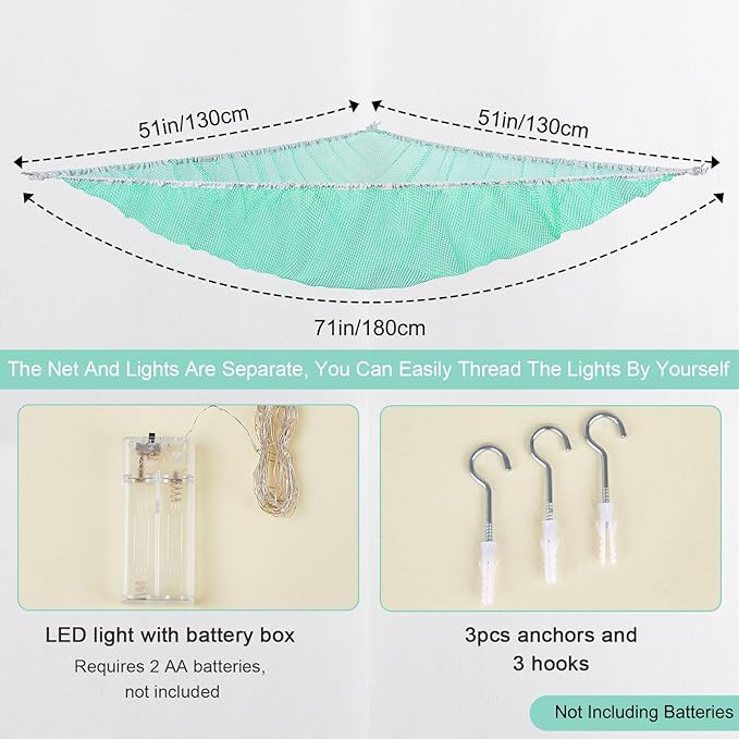 - Package Included: stuffed animals hammock, 118 inches LED string light with battery box, Batteries Not Included, wall hooks for installation; Package are NOT including batteries