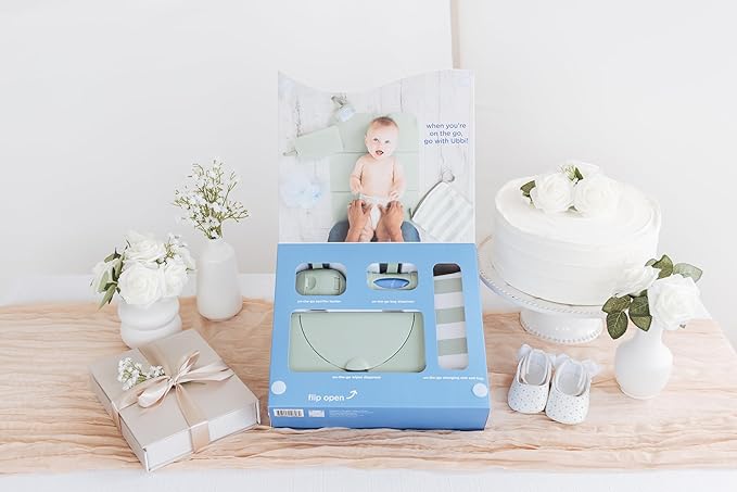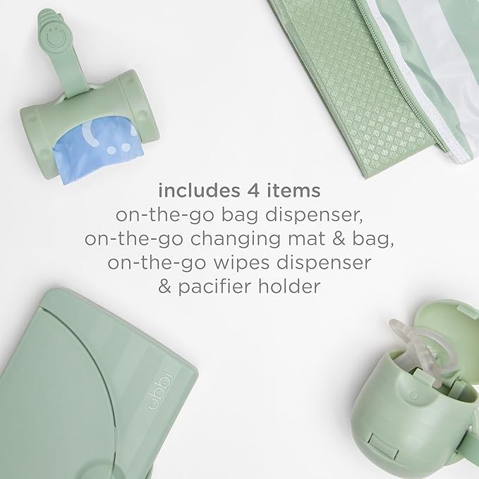 Ubbi On-The-Go Diapering Gift Set, Includes Changing Mat and Bag, Wipes Dispenser, Pacifier Holder and Bag Dispenser, Newborn Essentials, Sage
