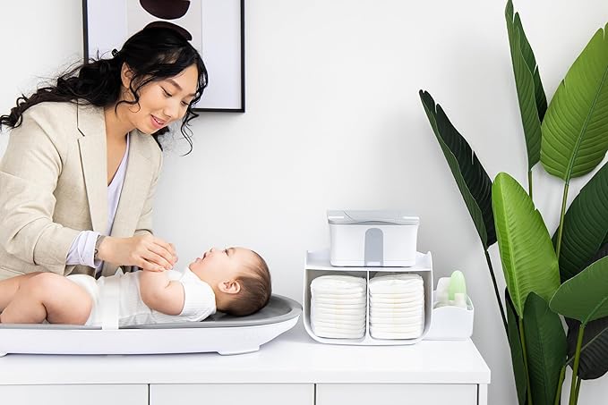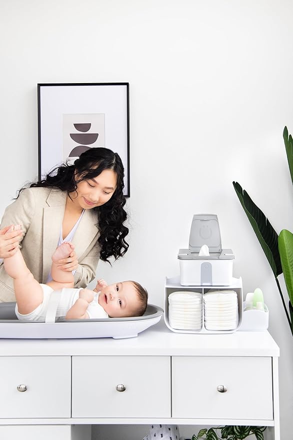 - Convenient Wipes Tray: Features a dedicated 10" wide tray on top for wipes, perfect for quick and easy access during diaper changes.