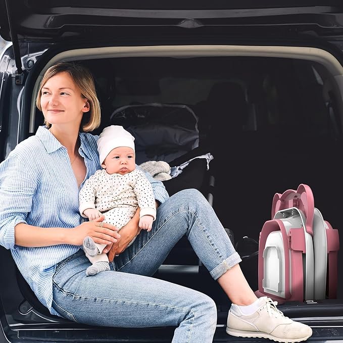 TPN Collapsible Baby Bathtub, Baby Bath Tub with Soft Cushion & Real-Time Thermometer, Baby Bathtub Infant to Toddler Tub (0-36 Months), Portable Travel Baby Tubs for Newborns (Pink)