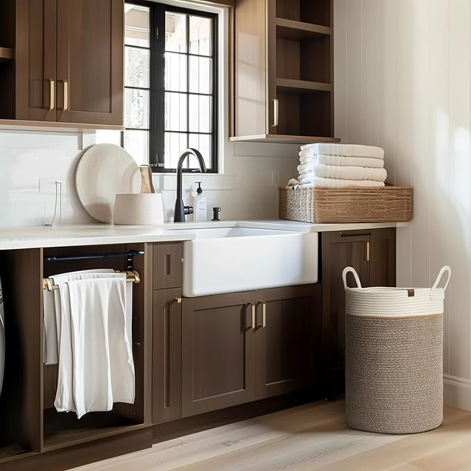 - REFINED COTTON ROPE LAUNDRY BASKETS - Enhance your home with our elegant, expertly-crafted cotton rope laundry baskets, available in a range of sizes and colours to meet your organizational and decorative needs. These versatile, visually captivating solutions blend functionality and aesthetic appeal, infusing your space with timeless beauty. Invest in premium quality to transform your living area into a refined, harmonious sanctuary.