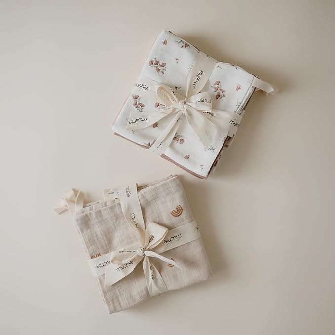- Soft Organic Cotton: Made of soft 100% organic cotton, mushie muslin washcloths are essential for cleansing delicate skin during bath time, wiping up messes during meal time, and any time in between.