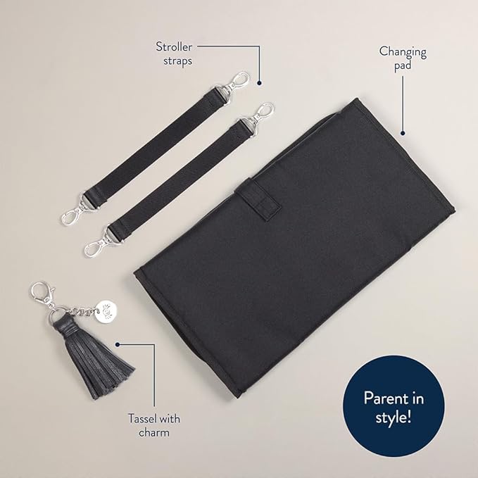 - ELEGANTLY MODERN, CLASSICALLY CHIC: Elevate your style with our Black With Gold Hardware Boss design. This exquisite diaper backpack features a removable vegan leather accent tassel adorned with an engraved chain link charm, adding a dash of sophistication to your ensemble. Our Boss diaper bags are so stylish that they can also be used as work bags, gym bags, or carry-ons while traveling, extending their utility long after your baby has outgrown diapers.