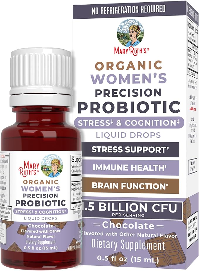 - For Most Lifestyles: MaryRuth's Organic Women's Precision Probiotic Stress & Cognition Liquid Drops are Certified USDA Organic, Vegan, Non-GMO. Dairy Free, Nut Free, Gluten Free, Soy Free, Sugar Free. Made in a GMP Facility. Clean Label Project Verified. B Corp Certified.