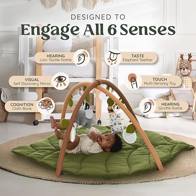 - 6 DETACHABLE TOYS INCLUDED: The play mat comes with six detachable tummy time toys that foster sensory development, making it an engaging activity center for baby. Ideal for newborn toys 0-3 months and baby toys 0-6 months.