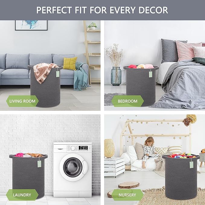 - 【Multi-purpose Design】A stylish, practical alternative to plastic laundry hamper or wicker basket storage solutions. Originally designed as a laundry basket, blanket basket, or nursery basket, it can be used more. You can use this woven rope basket as a dirty clothes basket, toy basket bin, baby laundry basket, laundry bin, stuffed animal basket, baby clothes basket, plant basket, pillow basket, towel basket and even a pet toy basket. The possibilities are endless. Carefully chosen colors and multiuse design will also make this a unique home decor in your home.