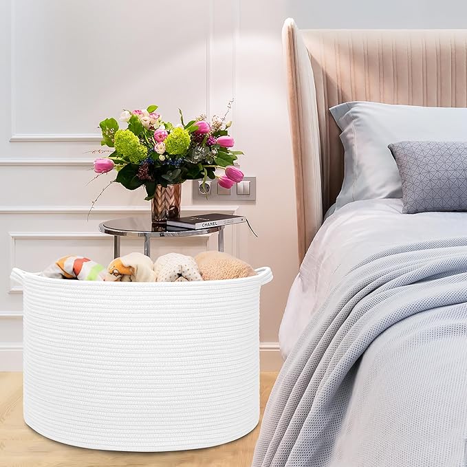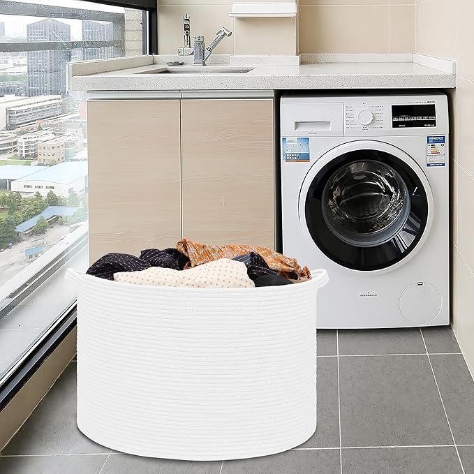 - 【Multi-purpose Design】A stylish, practical alternative to plastic baskets or wicker baskets storage solutions. Originally designed as a laundry basket, blanket basket, or nursery basket, it can be used more. You can use this woven rope basket as a dirty clothes basket, toy basket bin, baby laundry basket, laundry bin, stuffed animal basket, baby clothes basket, plant basket, pillow basket, towel basket and even a pet toy basket. The possibilities are endless. Carefully chosen colors and multiuse design will also make this a unique home decor in your home.