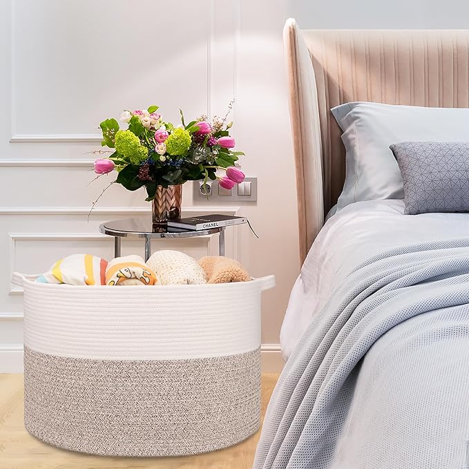 - 【Multi-purpose Design】A stylish, practical alternative to plastic baskets or wicker baskets storage solutions. Originally designed as a laundry basket, blanket basket, or nursery basket, it can be used more. You can use this woven rope basket as a dirty clothes basket, toy basket bin, baby laundry basket, laundry bin, stuffed animal basket, baby clothes basket, plant basket, pillow basket, towel basket and even a pet toy basket. The possibilities are endless. Carefully chosen colors and multiuse design will also make this a unique home decor in your home.