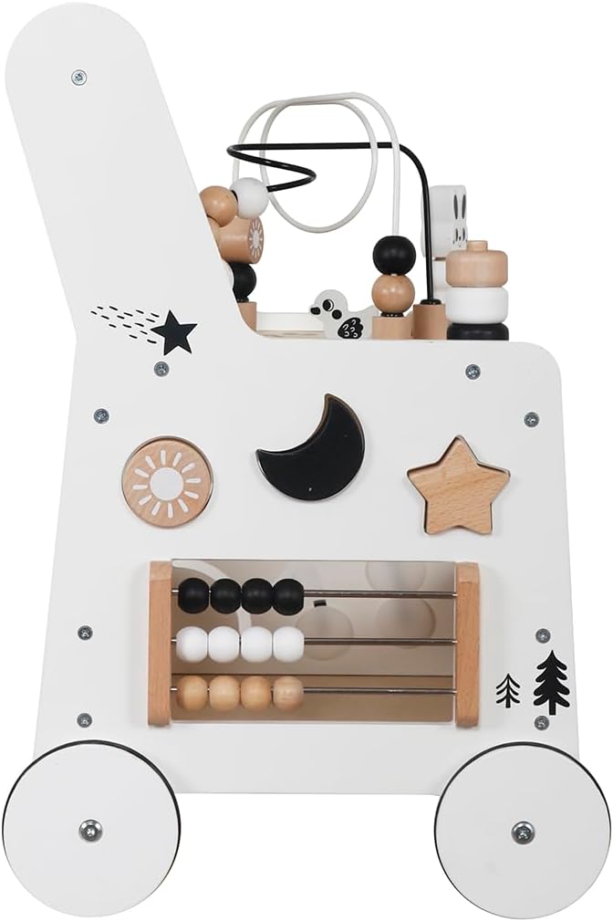 - đăMultifunction Fun Activity CenterăCombines 5 different activities in activity toddler walker:wooden bead mazes, baby shape sorter, abacus, spinning gears, sliding track. The montessori toys is best gifts kids play table toys for boys girls when birthday party, or christmas.