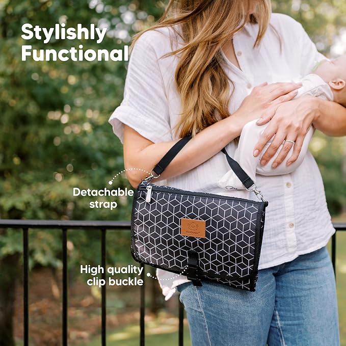 - Stay Hands Free - Free up your hands with our Ezee Diaper Changing Pad! Simply clip the metal clasps differently to wear it on your shoulder, arm, or stroller handle. Easy style changes while carrying your baby, babywearing, or using a stroller.