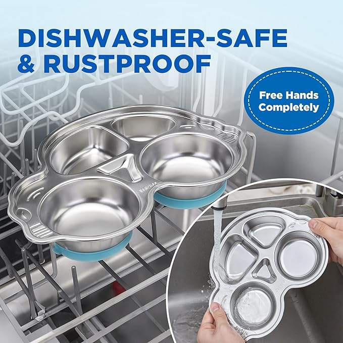 Stainless Steel Baby Suction Plates: Divided Plates Designed for Babies and Toddlers, Made of 100% Food-Grade Materials Ideal for Baby-Led Weaning BPA-Free Toddler Feeding Dishwasher Safe Blue