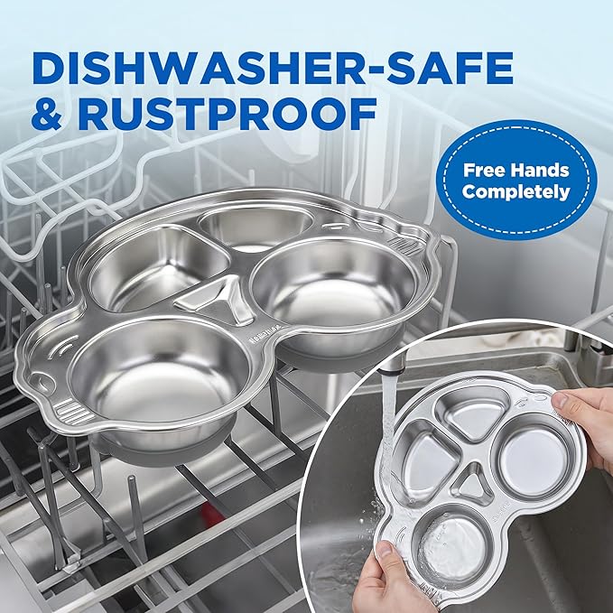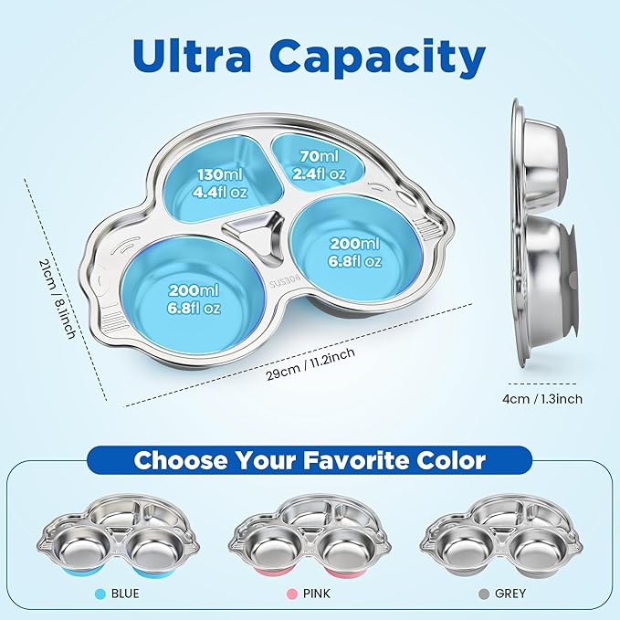 Stainless Steel Baby Suction Plates: Divided Plates Designed for Babies and Toddlers, Made of 100% Food-Grade Materials Ideal for Baby-Led Weaning BPA-Free Toddler Feeding Dishwasher Safe Gray