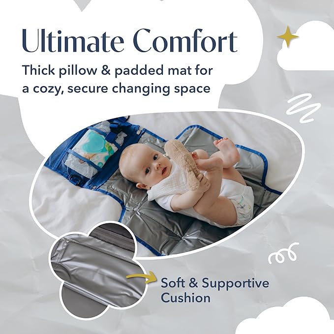 - 👶🏻 Baby Comfort Anywhere: Soft, cushioned surface with waterproof lining keeps your baby clean and comfortable during diaper changes — whether at home, the park, or while traveling