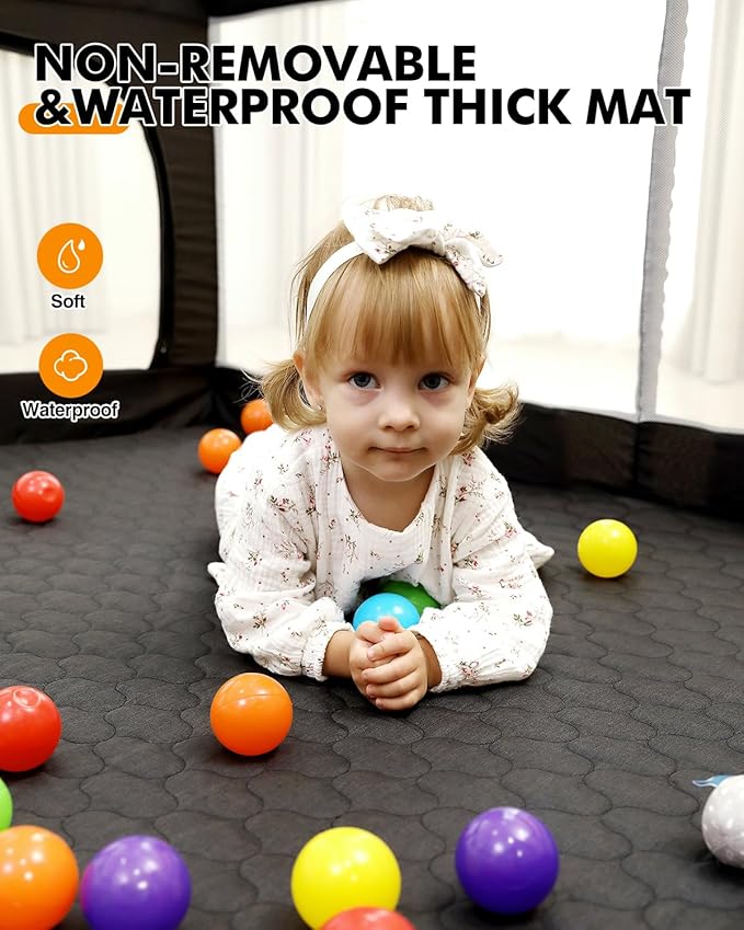 - Non-Removable Thick & Waterproof Mat:The playpen features a non-removable thick mat that provides a soft and comfortable surface for your baby; the waterproof material allows for easy cleanup of spills, making it ideal for both indoor and outdoor use