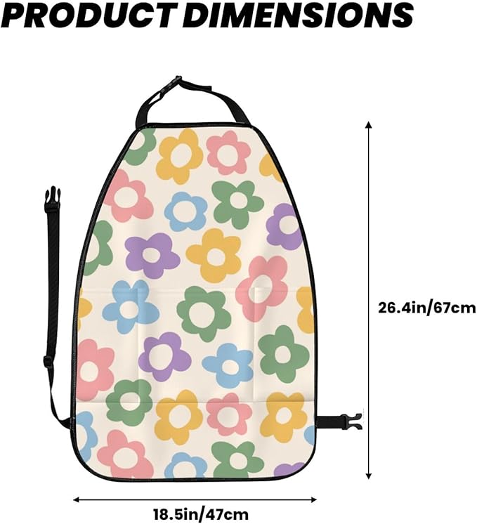 Vintage Groovy Flowers Car Kick Mats Back Seat Protector 2 Pack Auto Seat Back Covers with 3 Organizer Travel Accessories Universal Vehicle Interior from Dirt, Mud