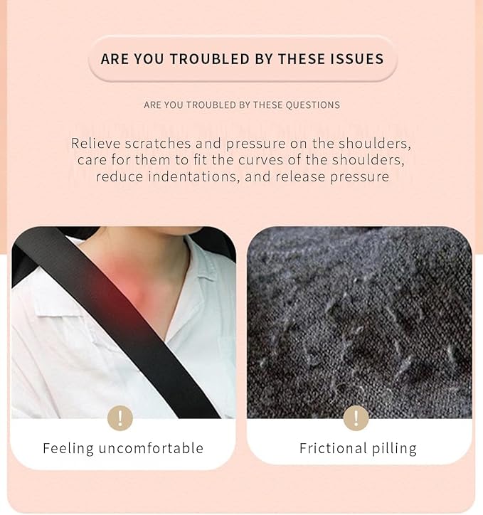 - 【Comfortable 𝐃riving】The seat belt cover is just the right amount of thickness and padding needed, nice and soft without being thick, or hot, or rubbing your neck, can protect your beautiful clothes. Reduce your driving fatigue and help drive safely.