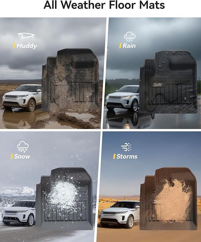 - ALL SEASONS AND DURABILITY: These durable Range Rover Evoque floor mats are easy to install and can be used all weather, which are stain-resistant, waterproof and anti-slip, preventing your carpet from rain, slush, snow, mud and protect the floor carpet during a typical winter or summer