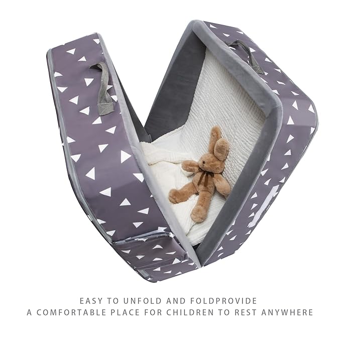 Mooedcoe Portable Foldable Toddler Travel Bed with Sides, Folding Toddler Bed for Travel Kid Foam Sleeping Cot for Children 18M – 5yr Old(Rectangular, Triangle)