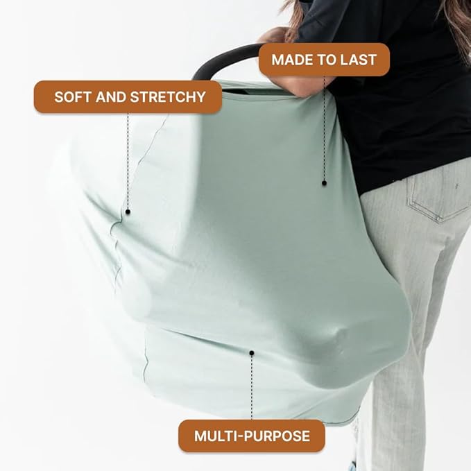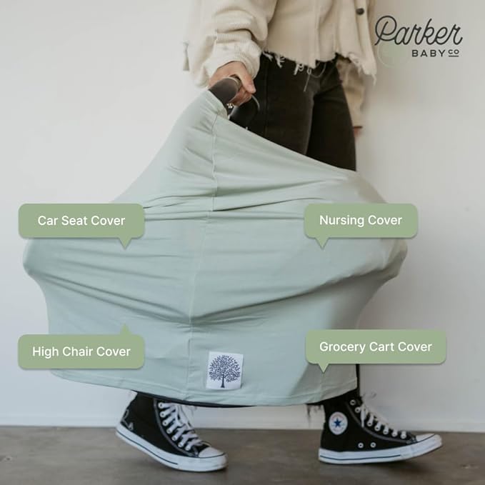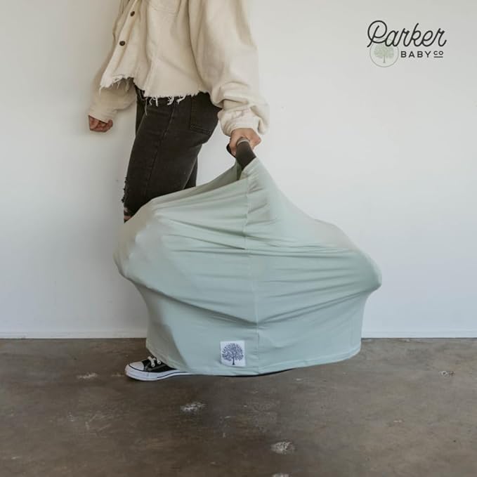 Parker Baby 4 in 1 Car Seat Cover for Girls and Boys - Stretchy Carseat Canopy, Nursing Cover, Grocery Cart Cover, High Chair Cover - Sage