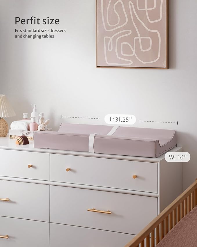 - Perfect Size - The baby changing pad size at 31.25"L * 16"W * 4.25"H, fits all standard changing tables and most dressers. With lightweight styling, it's convenient for on-the-go traveling, daycare and more