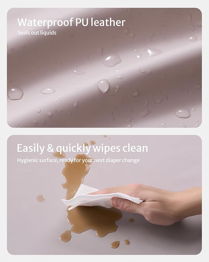 - Waterproof & Wipe-clean - Unavoidable mess and frequent laundry? Oh, no worries! Our contoured changing pad features a waterproof PU surface that wipes clean in seconds, ensuring a fresh and hygienic surface for your next diaper change. Fewer cover changes and less laundry make parenting easier