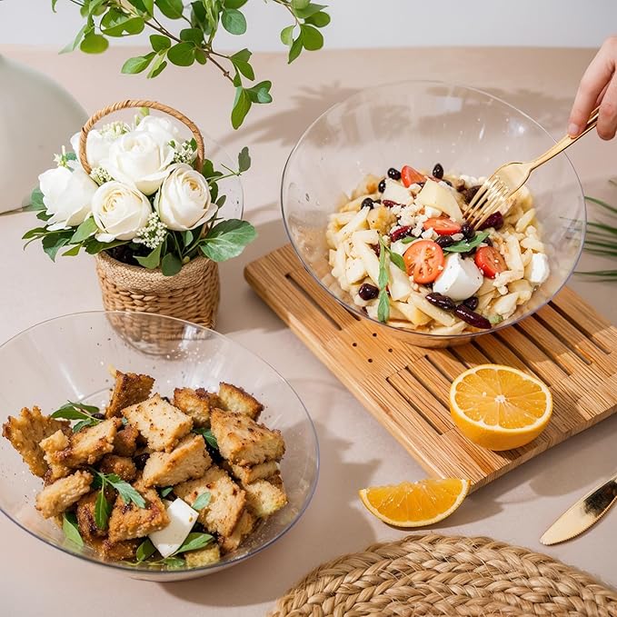 - EXCELLENT MATERIAL: Our clear salad bowls are made of high-quality thick plastic,which are sturdy and durable,and will not break easily even if it is full of food. Clear plastic salad bowl can even be washed and reused