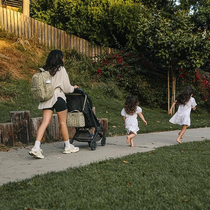 - ADDITIONAL WAYS TO CARRY: This versatile travel diaper bag features removable straps that attach to your stroller for walks or shopping trips. Also included is a trolley strap to slide onto luggage for easy, carefree travel.