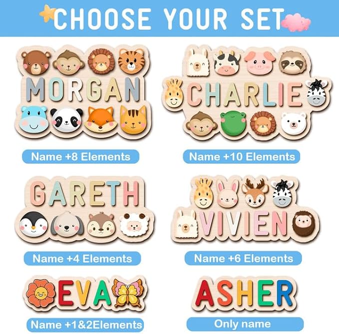 - Custom Name Puzzle for Baby: Personalize this wooden name puzzle with your child’s name to make learning letters fun and engaging for toddlers aged 1-3.