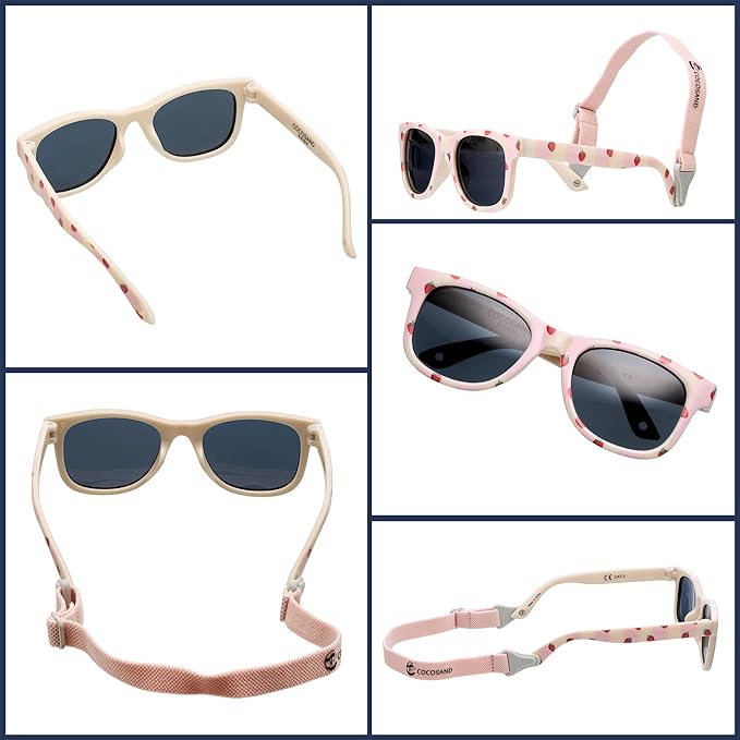COCOSAND Flexible Polarized Baby Sunglasses with Strap UV Protection for Toddler Infant Girl Boy Age 0-24 Months