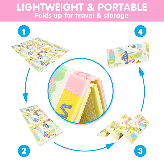 - đLIGHTWEIGHT & PORTABLE: This foam play mat for baby is lightweight & folds down easily and compactly for storage or travel!