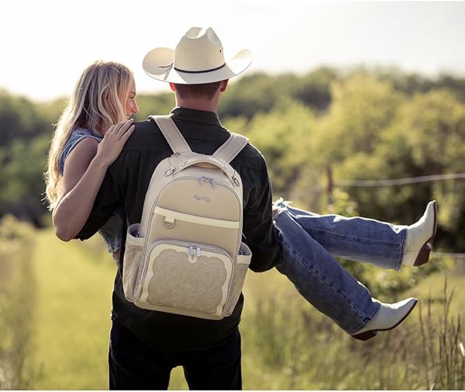 - ELEGANTLY MODERN, CLASSICALLY CHIC: Elevate your style with our western Oat design. This exquisite diaper backpack features a removable vegan leather accent tassel adorned with an engraved chain link charm, adding a dash of sophistication to your ensemble. Our Boss Plus diaper bags are so stylish that they can also be used as work bags, gym bags, or carry-ons while traveling, extending their utility long after your baby has outgrown diapers.