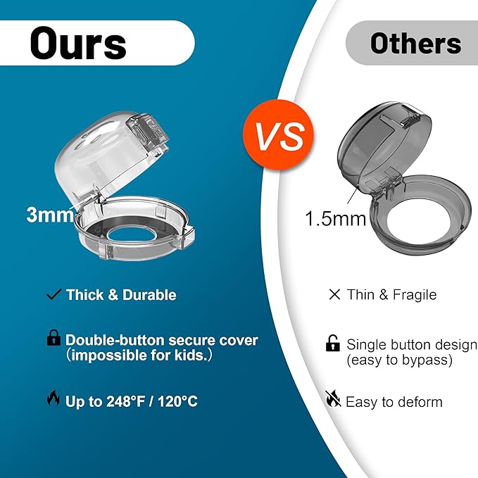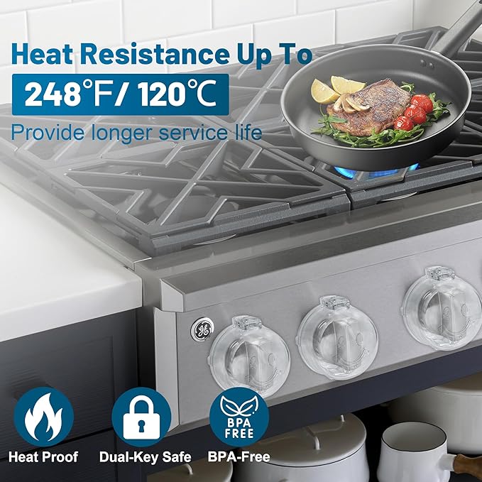 - 【Clear Heat-Resistant Material Design for Easy Monitoring】 Constructed from transparent, heat-resistant materials, these gas knob safety covers allow instant visibility of burner settings without removal. Withstands extreme heat up to 248°F (120°C), ensuring durability even during prolonged cooking.