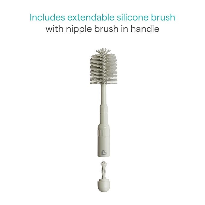 - Includes extendable silicone brush with nipple in handle