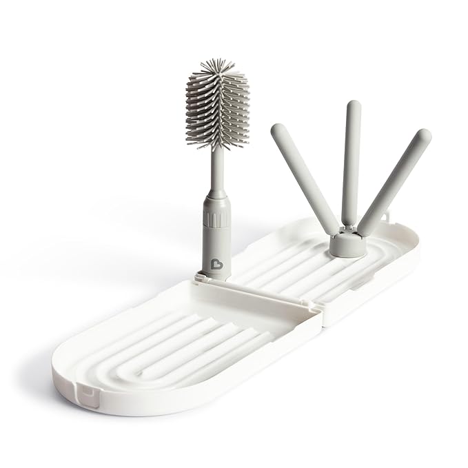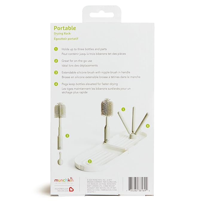 Munchkin® Travel Baby Bottle Drying Rack with Silicone Bottle Brush - Compact and Foldable, Fits Easily in Diaper Bags for On-The-Go Use