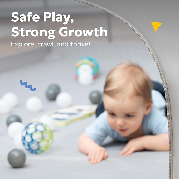 - Stylish & Modern Design for Any Space – This extra-large playpen blends seamlessly into any living room, playroom, or nursery. The neutral colors complement home decor while keeping toys contained and providing a secure play space for your child.