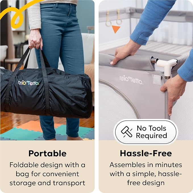 - Quick Setup & Portable Design – No tools needed! This play yard fence folds easily for compact storage and travel. Take it to grandparents' house, playrooms, or outdoor yards. A carrying bag makes it ideal for home or on-the-go use.