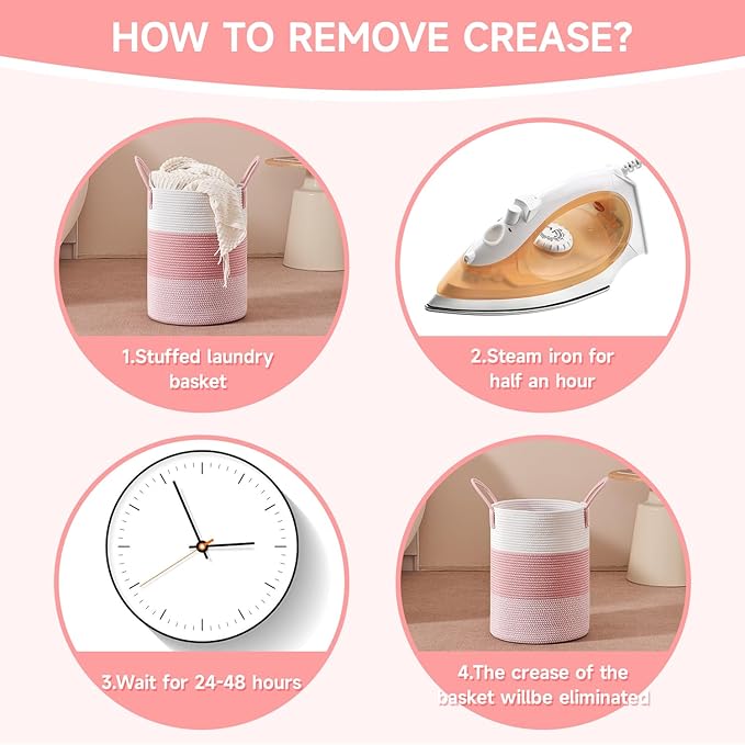 CLHMILY&Z 60L Laundry Basket Round Storage Rope Basket - 15x20.5 Inches - Pink Hamper in Bedreoom and Cute Storage Bin for Blankets, Toys, and Nursery Essentials