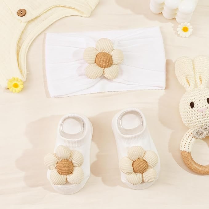 - 【Size】- Sock foot length 11-12 cm, suitable for 6-12 months baby, hair band length 5.5 inches, suitable for 0-3 years old baby to wear every day