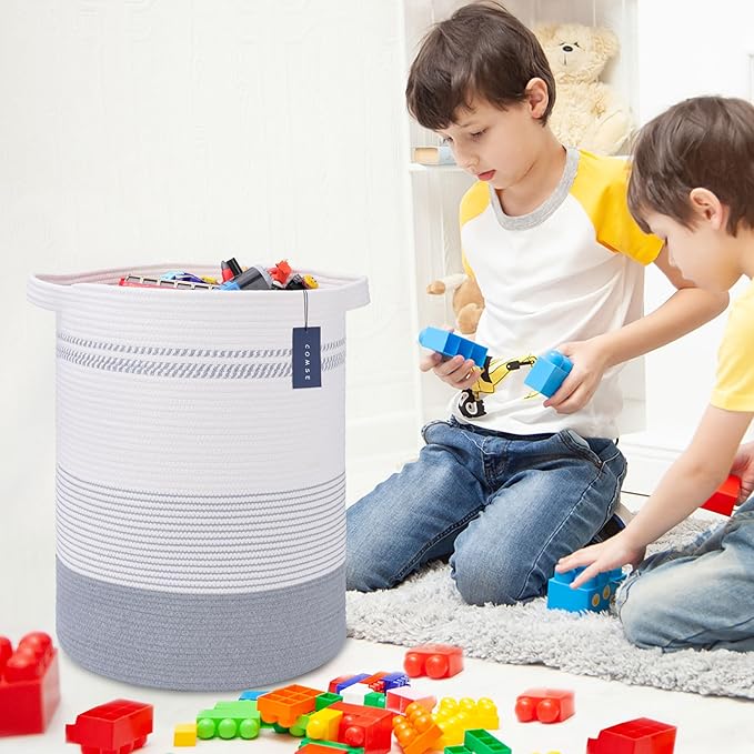 - 【Large Size】15.7" x 21.7", Tall blanket basket which is perfect for throw pillows, blankets, toys, clothing, Comforter or Cushions. Whether it is helping your child develop clean living habits, or as a decorative basket for your friends. With the appearances and practicality, we believe COMSE cotton storage basket is perfect as a gift for Birthdays, Festival.